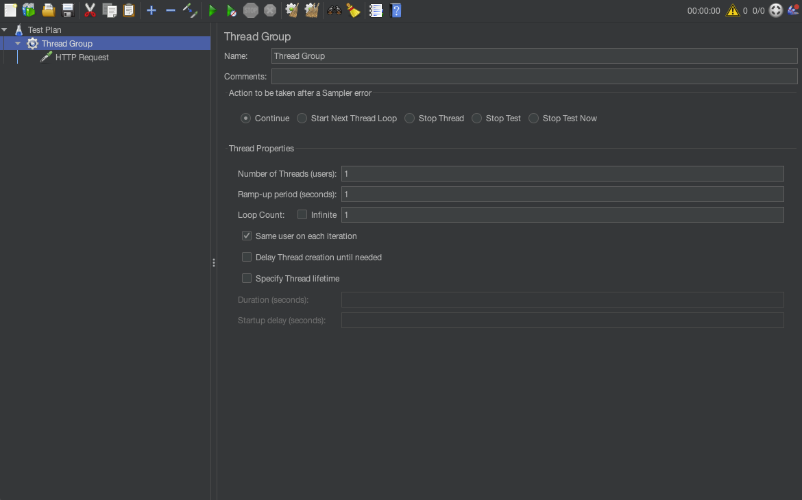 Thread Group은 사용자의 동작을 시뮬레이션하는 핵심 요소이다. 이를 통해 테스트에 참여하는 사용자 수, 요청이 이루어지는 빈도, 실행 시간 등을 설정할 수 있다.