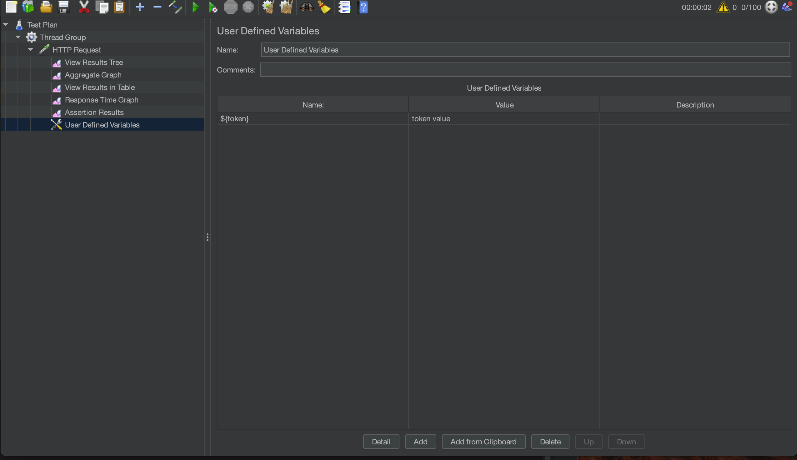 HTTP Request -> Add -> Config Element -> User Defined Variables 에서 설정이 가능하다.