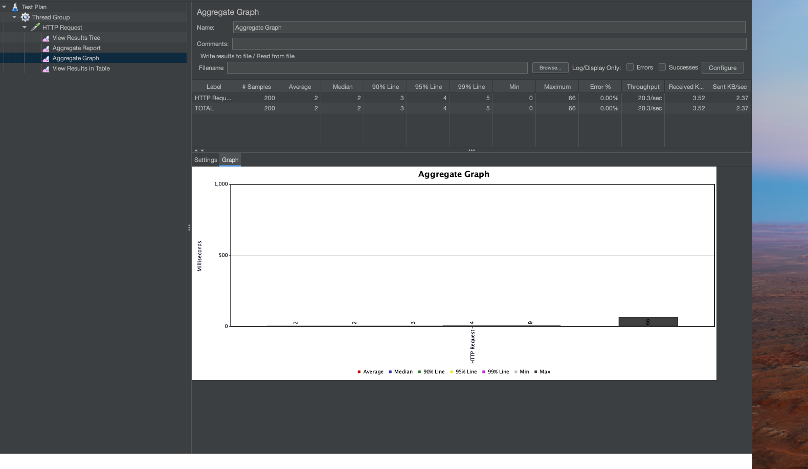 - 기능: 테스트 실행 결과를 그래픽으로 시각화하여 성능 메트릭을 한눈에 파악할 수 있는 리스너