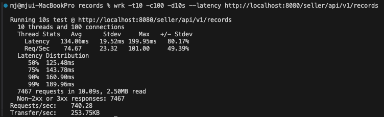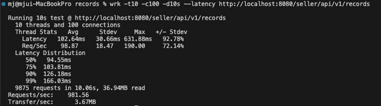 부하 테스트 (/seller/api/v1/records 기준)