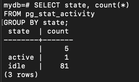 동일한 조건으로 Records 데이터를 조회했을 때, 커넥션 풀을 적용하지 않은 경우 PostgreSQL에는 2개의 커넥션이 활성화되었습니다. 이는 매 요청마다 새로운 커넥션을 생성하고 종료하기 때문에 발생하는 현상으로, 시스템 부하 증가 및 자원 낭비로 이어질 수 있습니다.